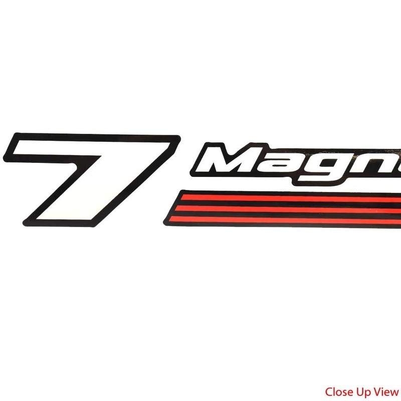 This "197 Magnum" decal is constructed out of vinyl with an adhesive backing. Measures approximately 12 3/8" L x 1 1/2" H overall.