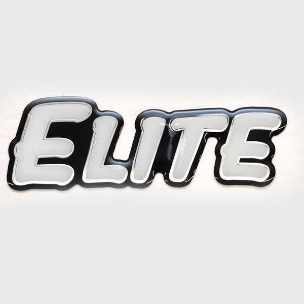 This raised decal is constructed of white and black foam filled vinyl with silver colored accents and a glossy finish. Measures approximately 4 1/8" L x 1 3/8" H overall. Features an adhesive backing for installation.