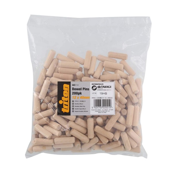 Triton TPTADP1240 Glue Wood Dowel Pins for Dowel Jointers 200 Pack 12x40mm