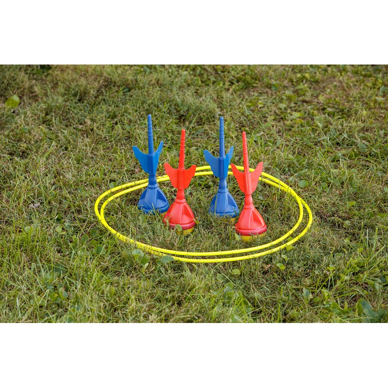 - TARGET RINGS CAN BE PLACED ON ANY HARD SURFACE: Set also includes two target rings to place on the lawn or patio to play anywhere