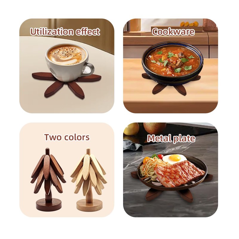 - 【Multi-functional use】Wooden tripod is 7.8 inches when unfolded, can hold bowls, frying pans, plates, teapots, hot pots, etc., can be used for a variety of different textures of countertops in the kitchen, living room, dining room and other scenes