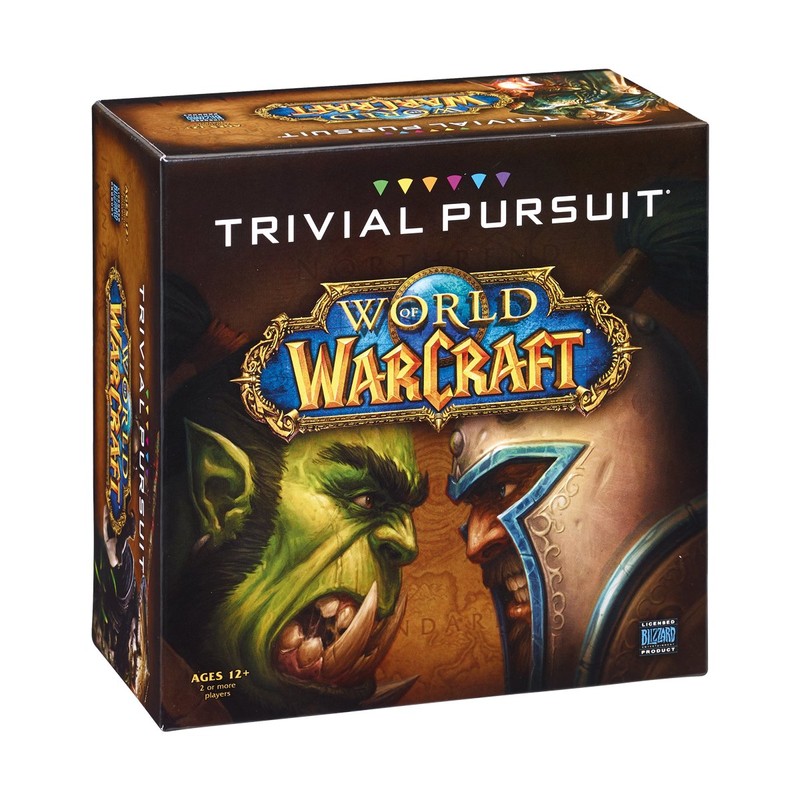 How well do you know World of Warcraft? Now with World of Warcraft Trivial pursuit, show off your knowledge by overcoming 600 questions of geography, lore and more. Game play 100 trivia cards with 600 questions covering six categories: Geography (Locations), Player Characters, Lore, Loot (Items), Enemies, Encounters Roll the die and move the number of spaces indicated to determine the category question. If the question is answered correctly, the player may take another turn. Players must answer a question correctly on a wedge space to get a scoring wedge from that category. Includes 100 trivia cards with 600 questions covering six categories Game board features custom World of Warcraft art Custom Baby Murloc movers Custom trivia card box featuring World of Warcraft art 6 traditional Trivial Pursuit scoring tokens Great for Gift giving Family game nights Trivia lovers World of Warcraft collector's item.