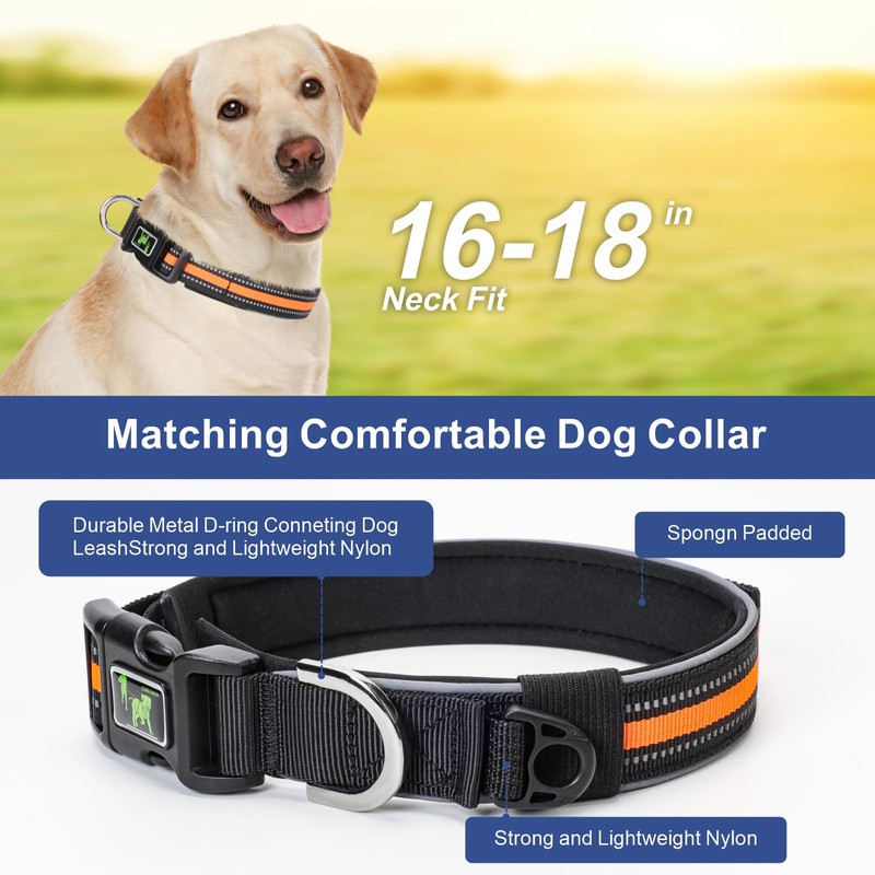 - Include Dog Collar - The hands free dog leash comes with an adjustable dog collar Neck Fit 16-18 inches, NO need to purchase a separate collar. The collar is designed with padded sponge for added comfort and is made of durable nylon that is easy to clean. It features a metal D-ring that is resistant to pulling and less likely to break