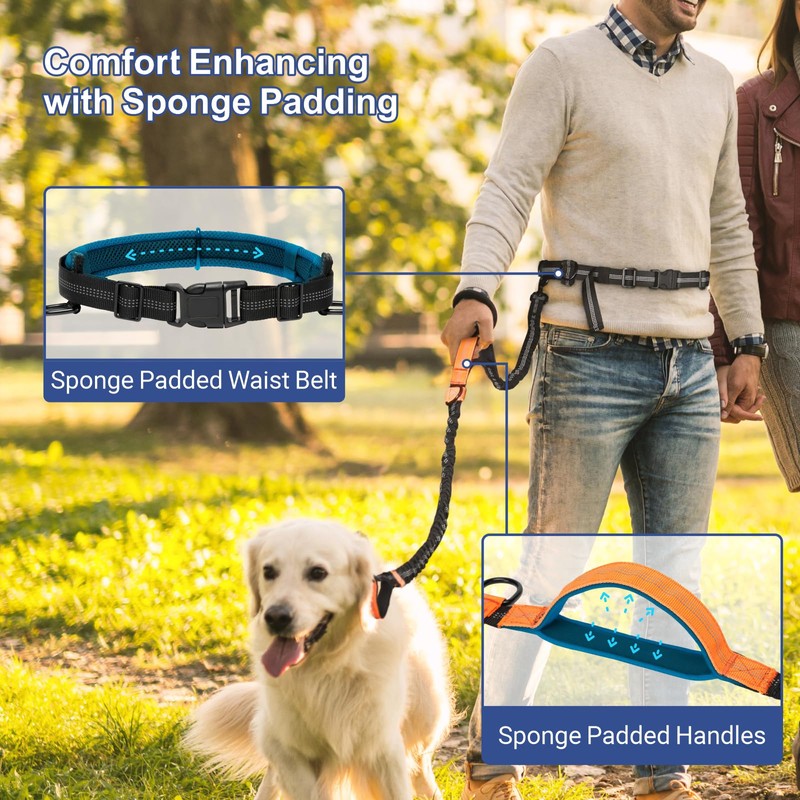 - Comfort Enhancing & Night Safety - The waist belt and handles of the dog running leash are padded with thick, comfortable sponge padding; Reflective stitching on the leash enhances visibility during nighttime walks, ensuring safer journeys with your pets