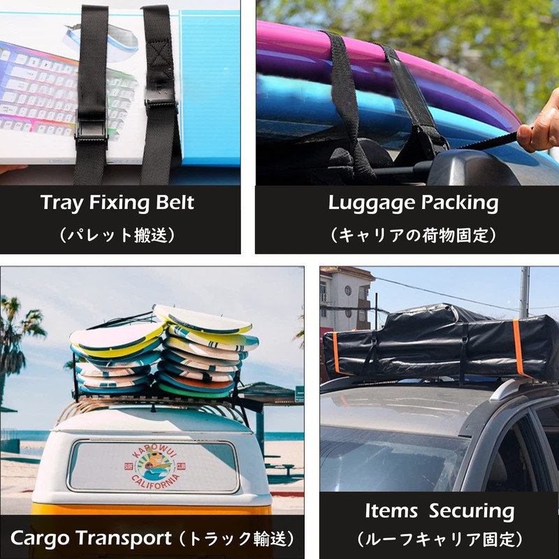 - Uses: Prevents cargo from collapsing and prevents cargo from collapsing in trucks, ships, trains and more. Prevents tipping over during earthquakes such as drawers, bookcases, closets, tea chests, shoe cases, etc. A belt for car roof carriers, camping, outdoors, bicycles, surfboards, coolers, furniture fixing, etc