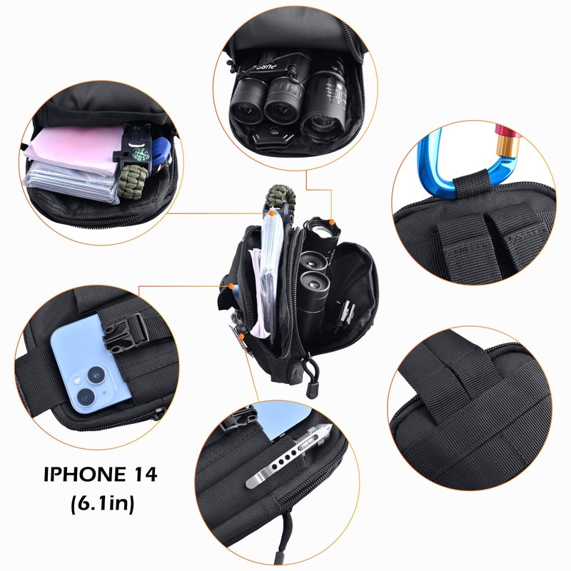 - ✅Multi-purpose: It can securely hold your smartphone, lights, power bank, notepad, etc.Great for everything from work, everyday use, cycling, mountain climbing, outdoor sports, to survival games