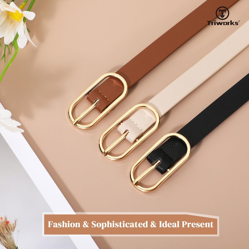 TRIWORKS Women Skinny Leather Belt for Dress Pants Jeans Ladies Thin Waist Belts with Gold Buckle