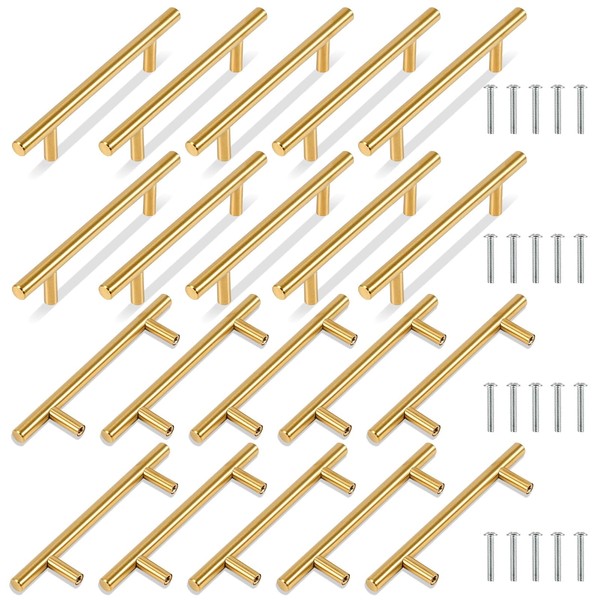 TRIXES 20PK Gold 150mm Wide Cabinet Door Drawer T-Bar Handles