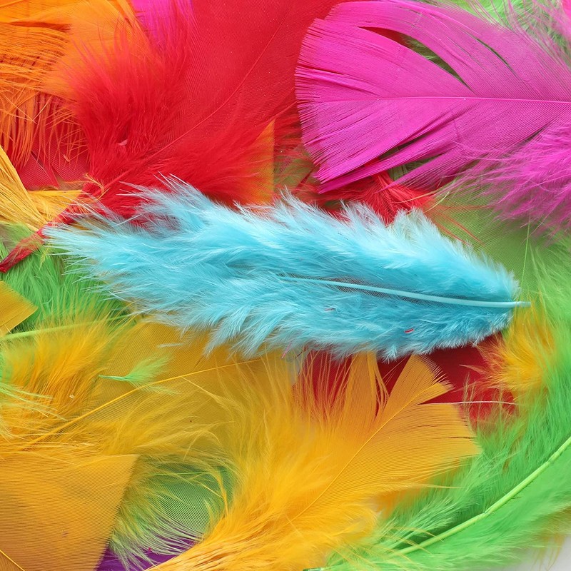• BRIGHT COLOURS; Our pack comes with an array of brightly coloured feathers that will catch anyone’s attention. With a large mix of orange, purple, blue, pink, red, green and white feathers.