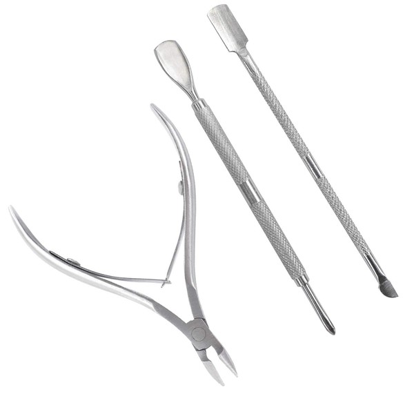 TRIXES Cuticle Care Kit - 3 Piece - Cuticle Cutter Nipper - Pushers and Tidy - Stainless Steel