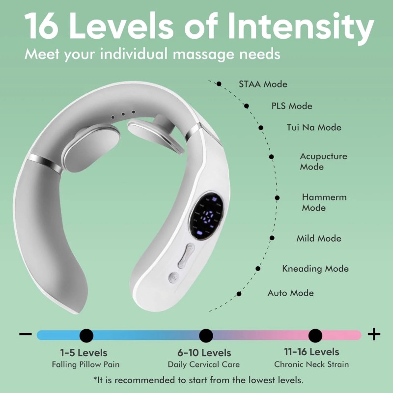 - DeepPain Relief & Intelligent Heating:Grade cervical massager combines deep tissue kneading, adjustable heat therapy, Intelligent sensors auto-adjust pressure for targeted pain relief.