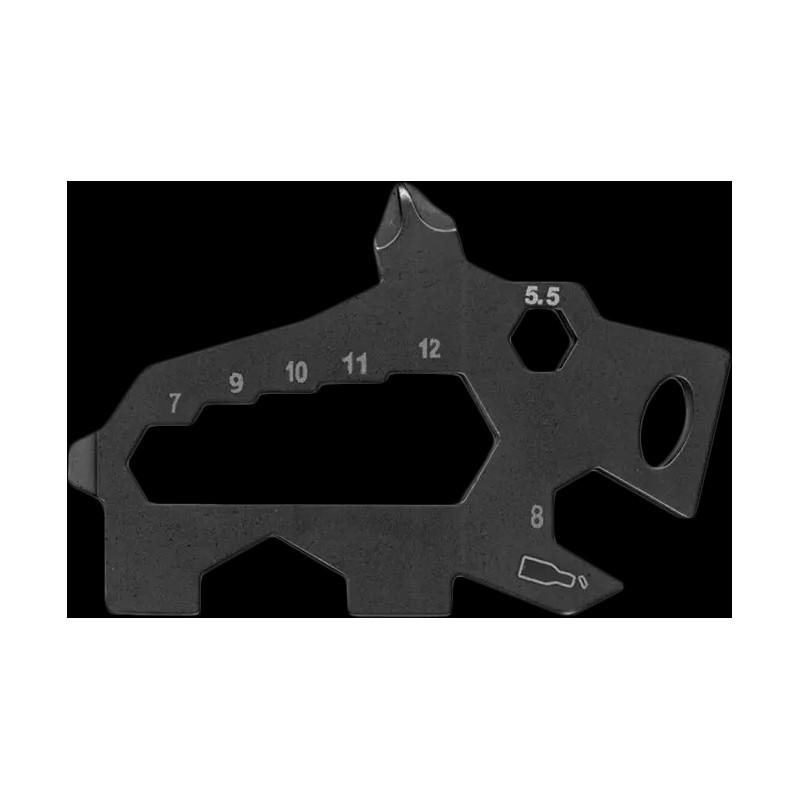 This dog can stay with you wherever you go and will fit right on your keyring. The bulldog shaped multi-tool contains 11 different functions, yet is only 2.5" in length. It is made from 420 stainless steel, is TSA compliant for safe travel and contains the following tools: