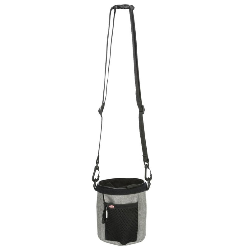Twist closure allows access without opening the bag. Different strengths of the fabric regulates the access, closes when not in use, closure provides protection against rain, integrated waste bag dispenser with infinitely adjustable, removable shoulder strap and attachment clip, carabiner for attaching a dog whistle or clicker with outer pockets, reflective elements, material: polyester, dimensions: diameter 12 x 17 cm, colour: various