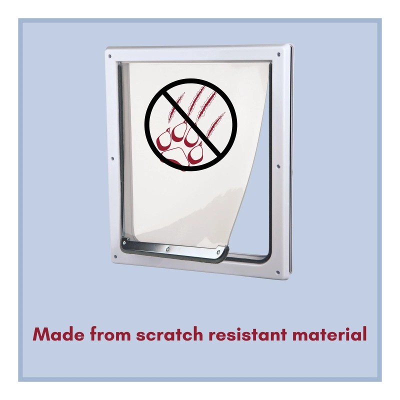 SAFE AND SECURE: The flexible transparent flap allows your dog to easily see and enter or exit and includes a lockable panel for added security against unwanted guests and bad weather