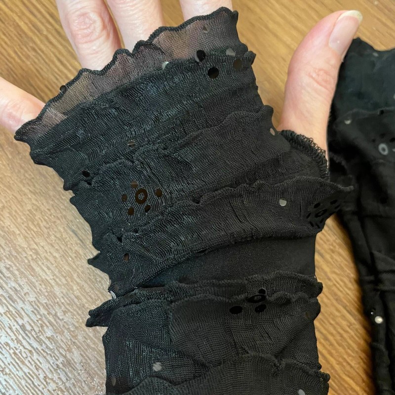 Trixy Xchange Ruffle Sequin Fingerless Gloves Black Mummy Wrap Hand Warmers Bandage Dance Gift