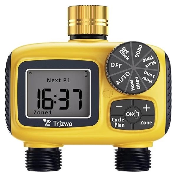 TRJZWA Sprinkler Timer Outdoor with Brass Swivel Water Timer for Garden Hose 2 Zone ...