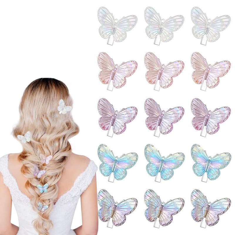 TRKETK 15 Stück Schmetterling Haarspange Klein Rutschfeste Mini Haarspangen Mehrfarbig Süße Schmetterling Haarschmuck Transparenter Haarschmuck für Madame Dickes und Dünnes Haar