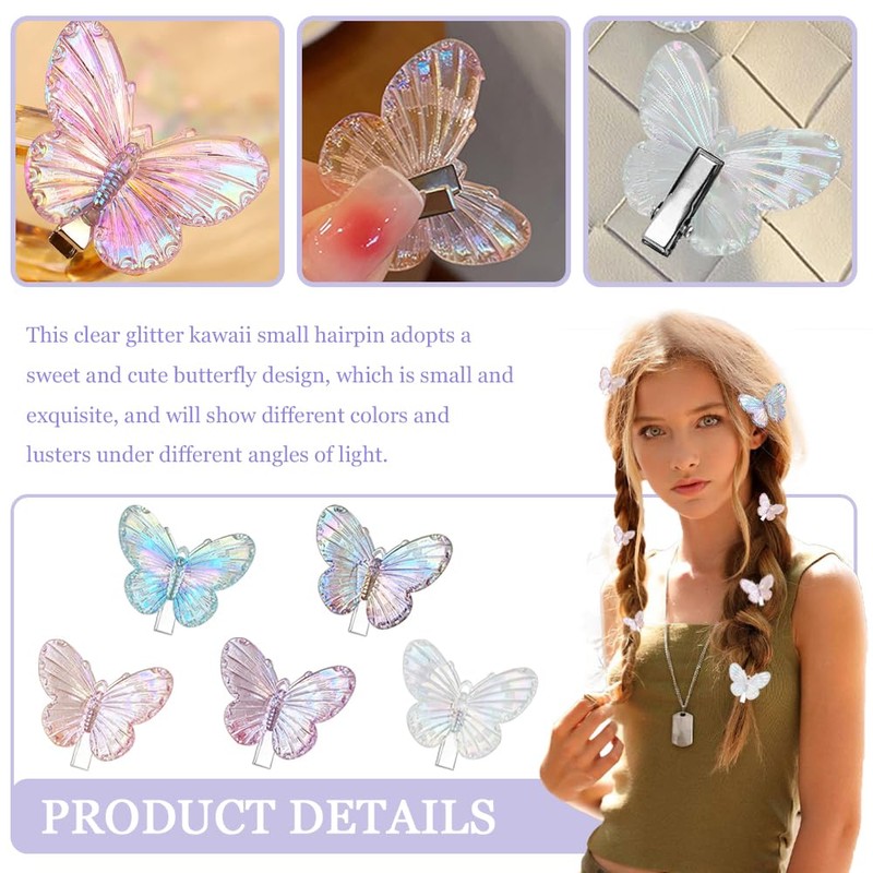 - Kleines Schmetterlings-Design: Diese klare glitzernde Kawaii-Haarnadel hat ein süßes und niedliches Schmetterling-Design, das klein und exquisit ist und verschiedene Farben und Glanz unter verschiedenen Lichtwinkeln zeigt. Das Tragen unserer kleinen Schmetterlings-Haarnadeln macht Sie süßer und charmanter und ist ein guter Helfer für passende Frisuren.