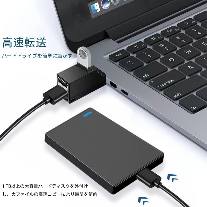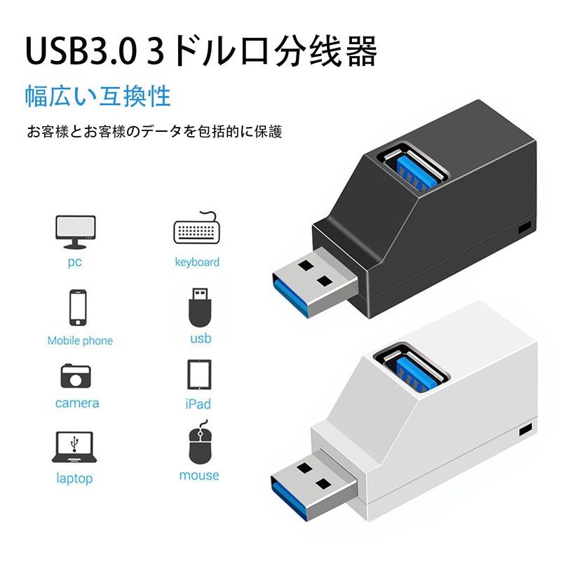 • 【3 Ports Extension】1 x USB 3.0 Port, 2 x USB 2.0 Ports. With up to one USB-A port on your laptop or desktop computer, you can connect to three ports. Fashion 3-Port USB Hub for Laptop without Data Cable
