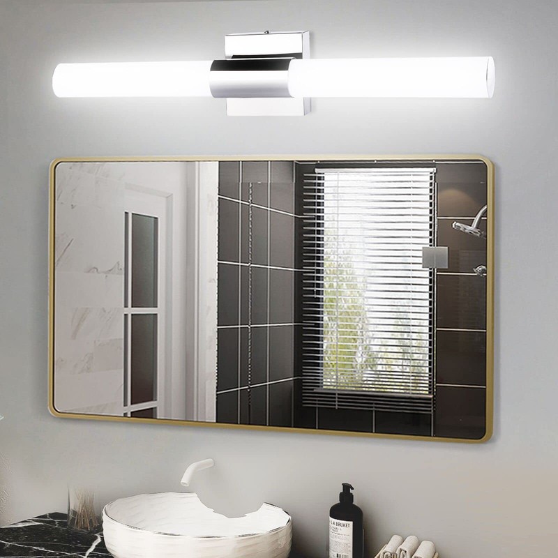 - Material: Stainless steel lamp body + PC cover, modern and fashion LED bathroom vanity light fixture, looks very modern and shinning. Widely used for bathroom, bedroom, makeup room, over bathroom mirror etc.