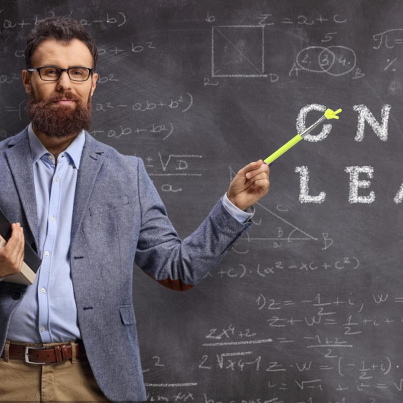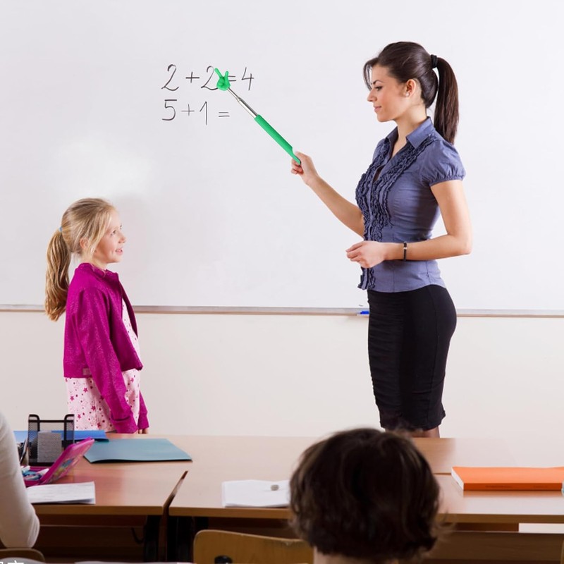 - UNBREAKABLE STEEL CORE, SILKY SMOOTH ACTION The industrial grade stainless steel telescopic shaft can withstand the daily classroom chaos, while the silicone handle resists sticky fingerprints. Glide from 17cm (pocket friendly) to 55cm (front row) without jamming - perfect for dynamic lessons.