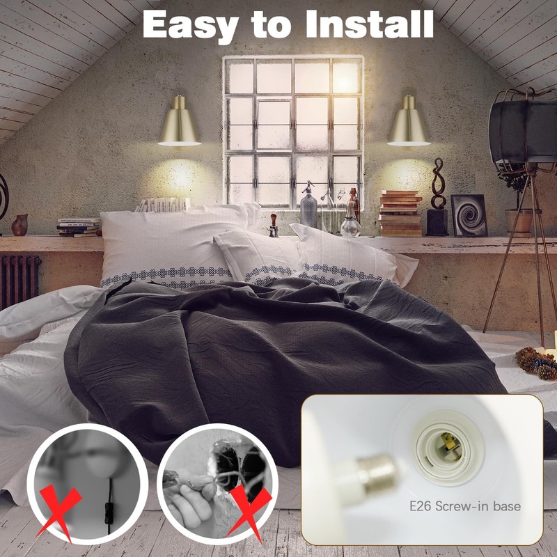 - 【Wireless Install】Add battery wireless wall sconces without needing an electrician! No hardwired mounting. Just fix the base of the wall lamp with screws, no need to run wires through walls or plug in. The battery wall sconce only takes a few minutes to install. This battery powered sconce set comes with 2 metal wall lamps, 2 LED bulbs, 2 remote controls, mounting screws, and installation instructions.
