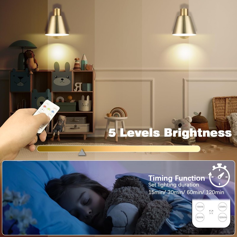 - 【Memory & Timer Functions】The sconces wall lighting battery operated comes equipped with memory and timer functions. The memory function stores your preferred lighting settings, so you don't have to readjust these cordless wall sconces every time you turn on the light. The timer function allows you to preset durations of 15, 30, 60, or 120 minutes, providing enhanced control over your lighting experience.