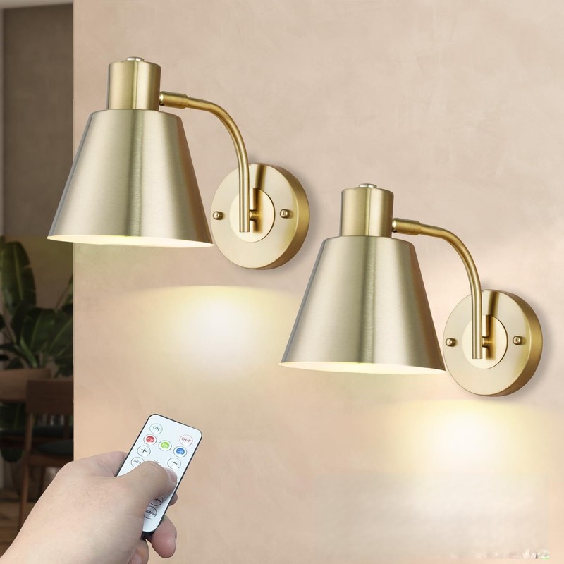 - 【Battery Operated Wall Sconce with Remote Control and Manual Operation】Our wall sconces set of two comes with 2 energy-efficient LED bulbs, providing bright light and saving on electricity costs. Each bulb requires three AA batteries (Please note the AA batteries are not included), eliminating the need for frequent bulb replacements. Besides, the sconce wall lighting can be controlled effortlessly using the remote(Included), allowing you to turn it on/off, adjust brightness, and color temperature, and set timers, all from the comfort of your bed or sofa. You can also press the bulbs with manual operation to control the light.