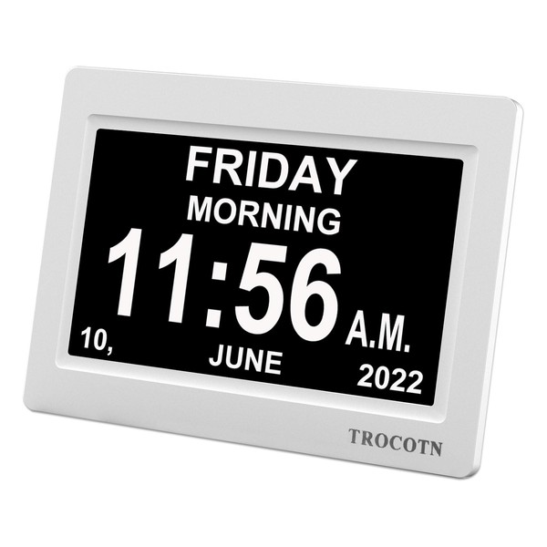 TROCOTN 7 Inches Digital Clock Day Clock Large Display Alarm Clock Wall Clock (White)