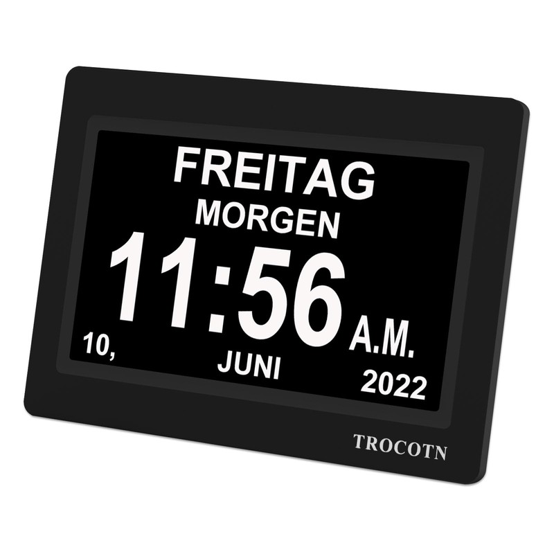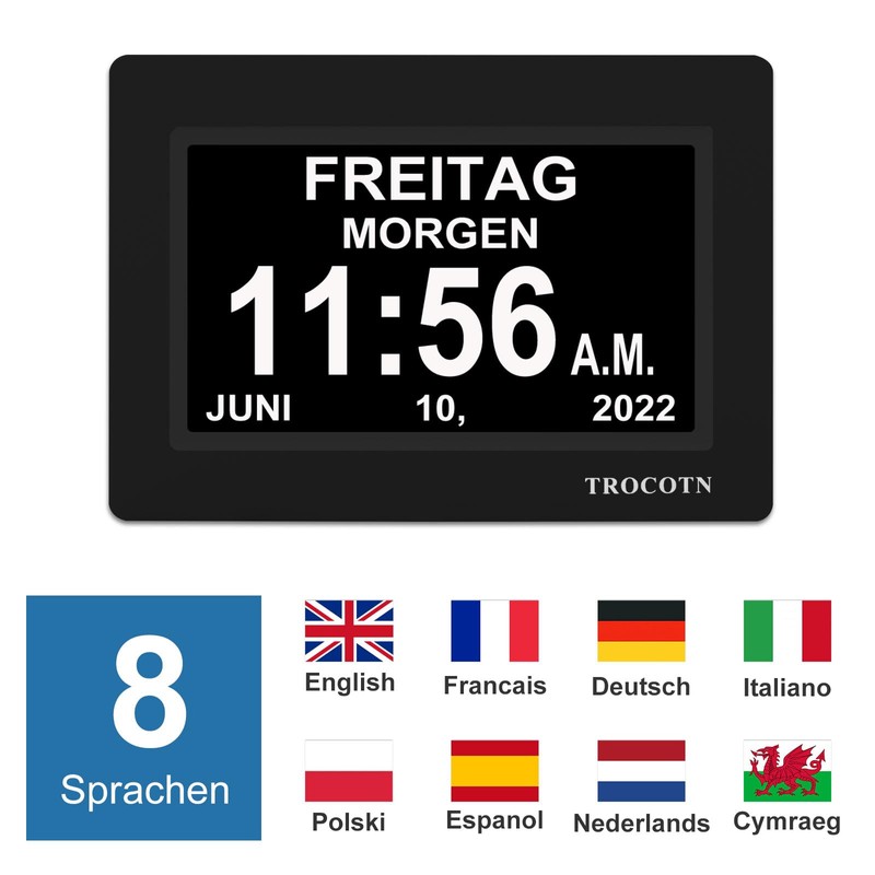 TROCOTN Digitale Uhr Tagesuhr Großes Display Wecker Wanduhr (Schwarz, 7 Zoll)