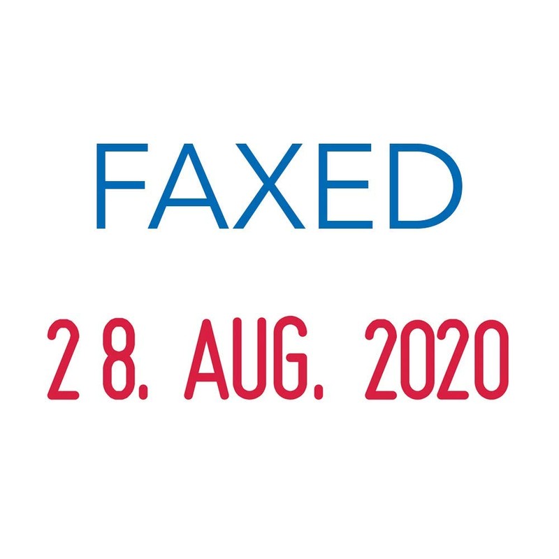 Trodat Printy 4850/L9 Dater Stamp with English Phrase FAXED - Self Inking, Red Ink Date and Blue Text