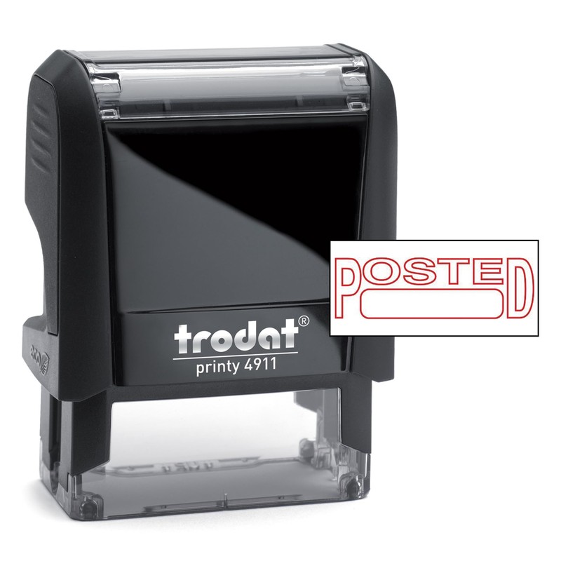 Trodat Printy 4911 Self-Inking Stamp with POSTED Message with Box for Date - Red Pad - Produced from up to 65% Recycled Plastic