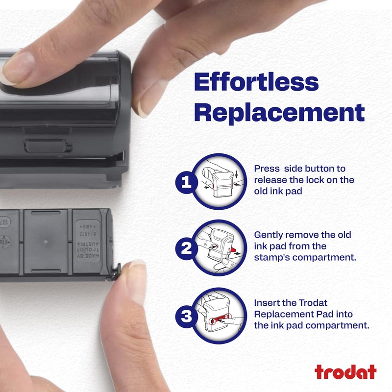 - Premium Ink Cartridges: Our Trodat replacement ink pads provide high-quality impressions every time, contributing to the clarity and durability of your stamped messages.
