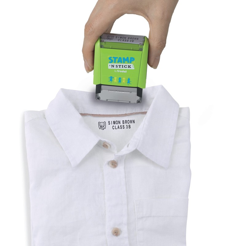 Trodat Stamp 'N Stick Clothes and Personal Belongings Stamper & Sticker Set – English – Create Your own Stamp with Dermatologically Tested Ink, Black, Dishwasher and Washing Machine Safe Small
