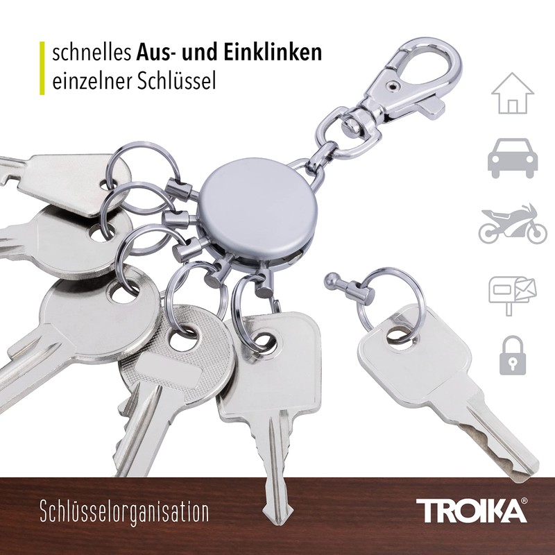 • The function of our patented Key Organizer: Easy hooking and replacing of the rings for using individual keys - can be expanded with additional rings (Troika KR-KIT).