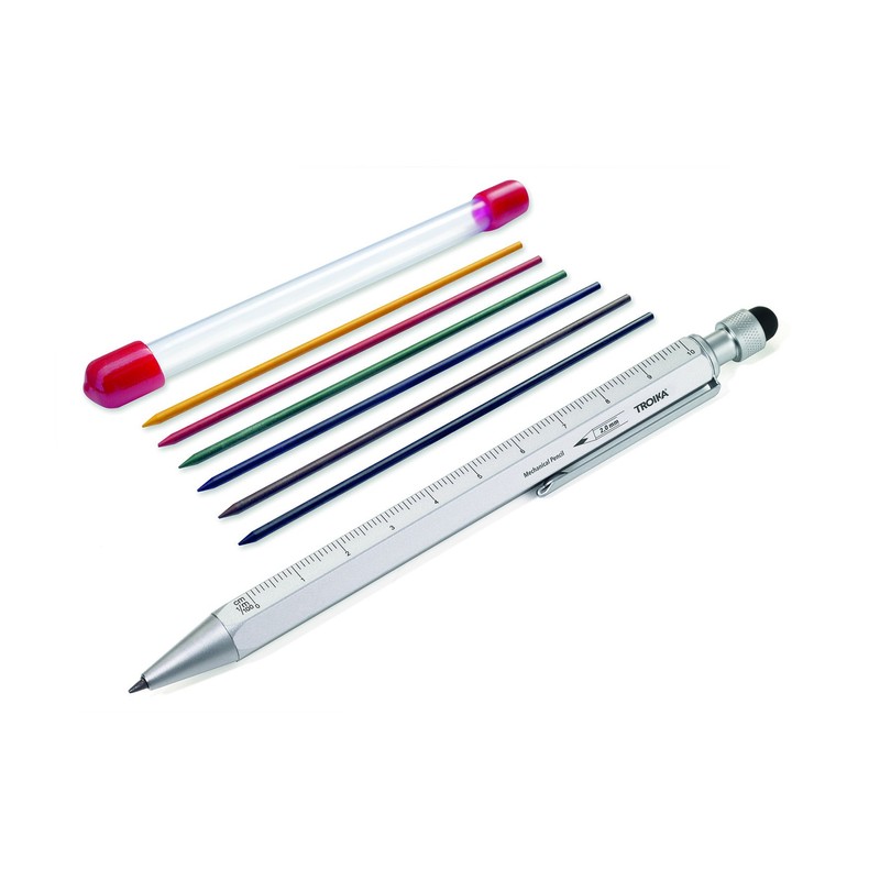 - The original multi-tasking printing pencil from TROIKA - with 2 mm thick pencil lead and six additional colourful leads