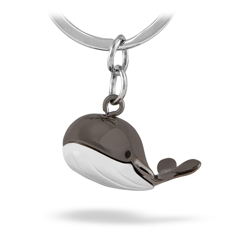 - Key Ring, Whale, Shiny, Gunmetal, Grey/Silver