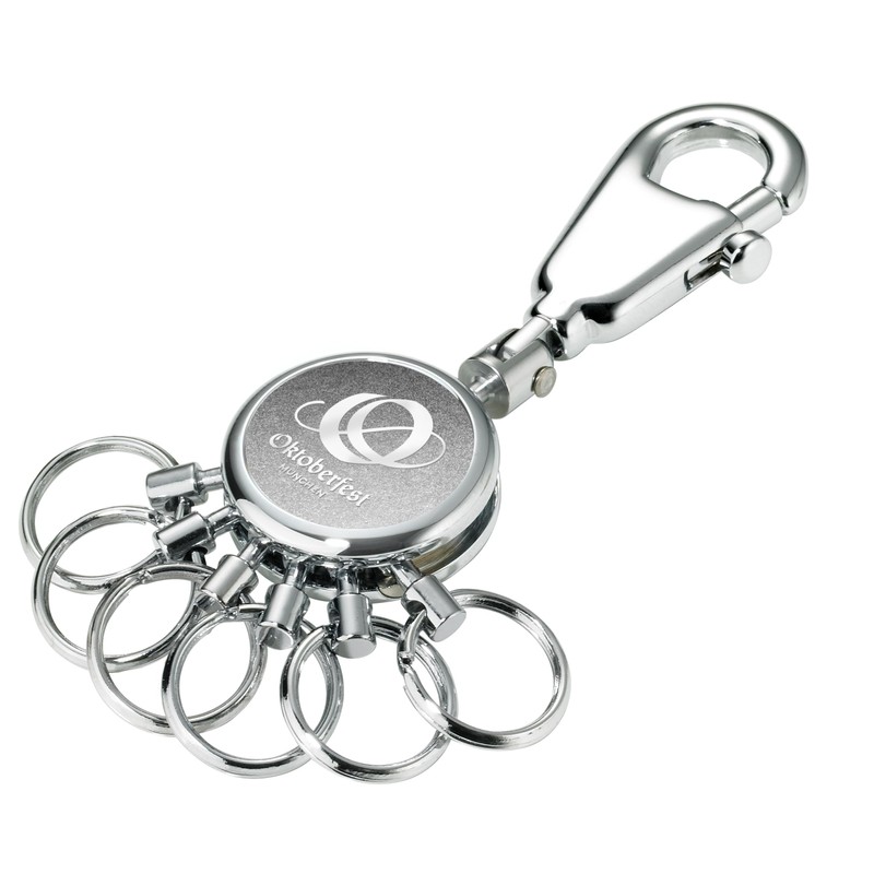 - Oktoberfest key organiser with carabiner and 6 removable key rings for the perfect and safe key organisation around Oktoberfest. The patented key organiser impresses with the easy removal and latching of individual keys, durability and quality.