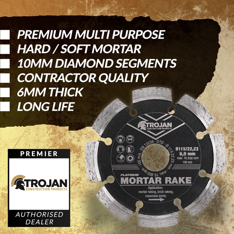 TROJAN Platinum Professional Contractor Mortar Raking Diamond Blade/Diamond Disc - 115mm 4.5"/6.0mm Width