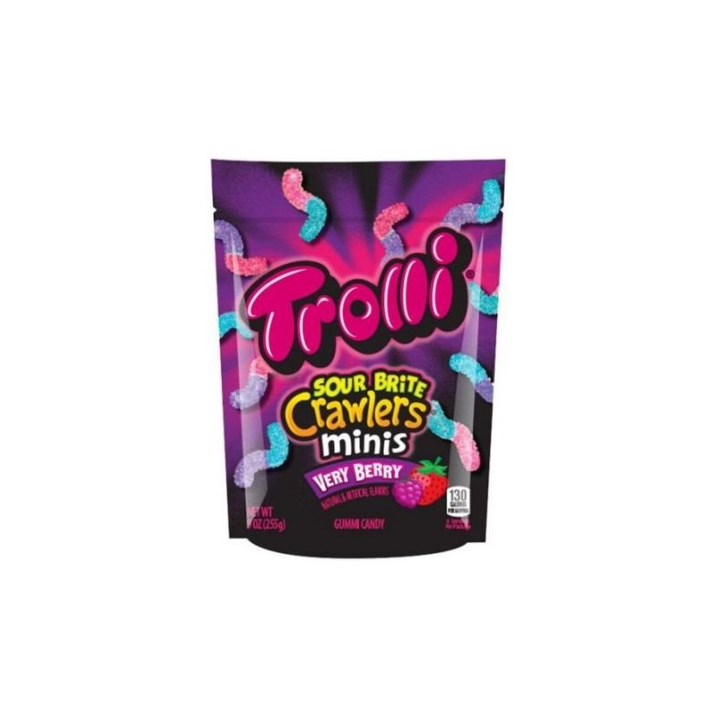 Trolli Minis Sour Brite Crawler Very Berry Gummi Candy, 9 Ounce -- 6 per case.