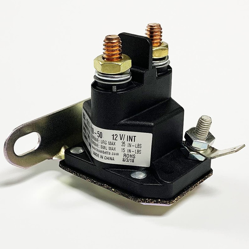 - Plastic Family: 12 Volt DC Contactor; (2) 1/4-20 copper contact studs; (1) grounded 10-32 stud, plus spade; 15% sustained duty; L-bracket; no additional sealing.