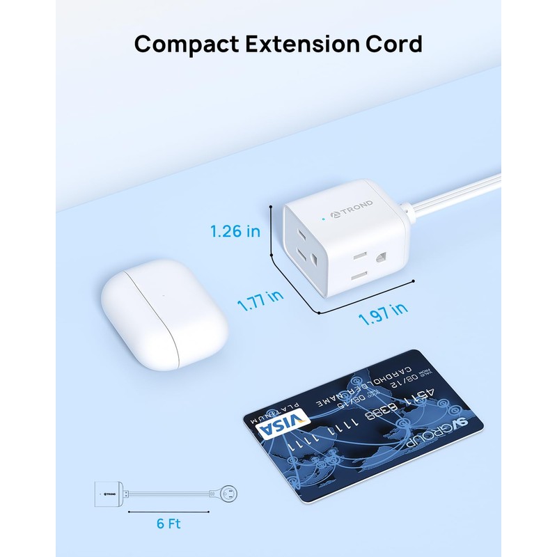 TROND - Cable de extensión plano con múltiples tomas, enchufe de pared plana giratorio de 360°, cable de conexión a tierra de 3 puntas, 6 pies de largo, 16 AWG, color blanco