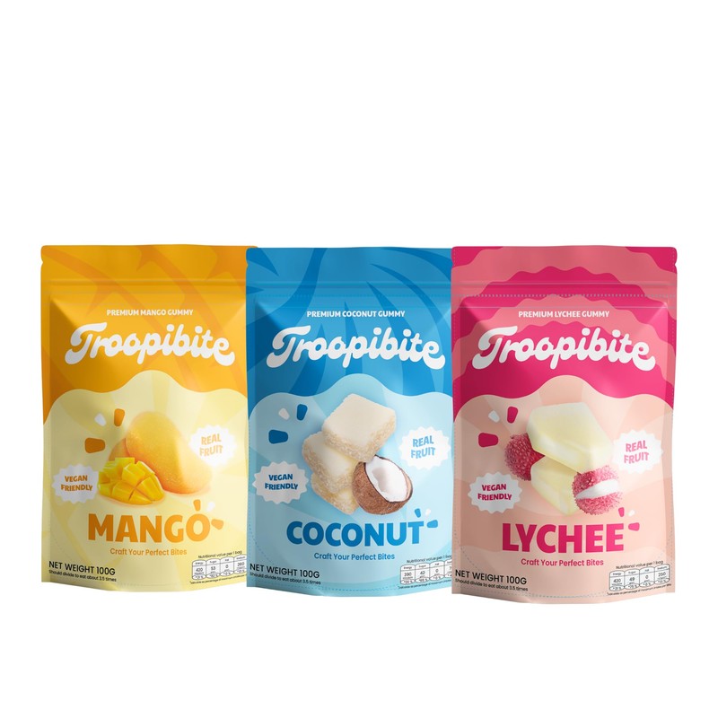 Troopibite Mixed Real Fruit Gummies – Mango, Coconut, Lychee – Vegan Friendly Chewy Snacks Made with Real Fruit, Fruit Snacks Bulk, (Pack of 3) (Mixed Fruit)