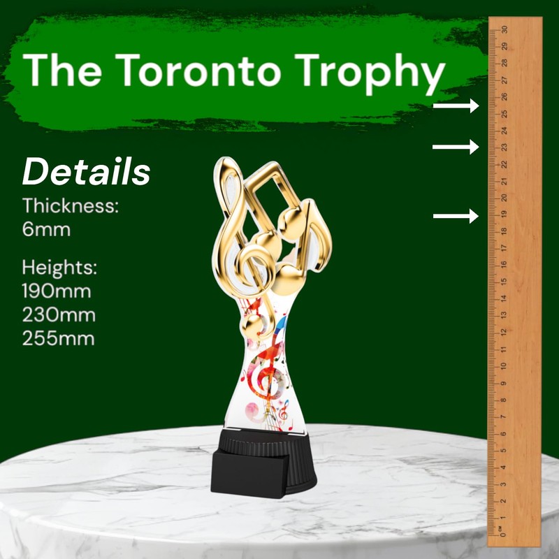 Trophy Monster Toronto Music Notes Trophy Size 190mm | for Clubs, Events & Competitions | Made from 6mm thick Printed Acrylic