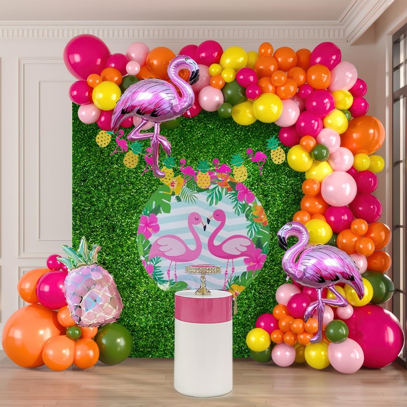 - Flamingo Theme Balloons: Includes 130 balloons in orange, yellow, pink and green colors with 3 aluminum foil balloons for a cheerful atmosphere