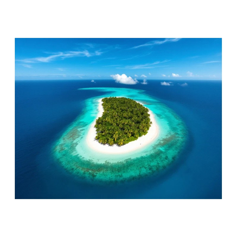 Tropical Island with Palm Trees and White Sand Beach Poster Print 18 x 24 in
