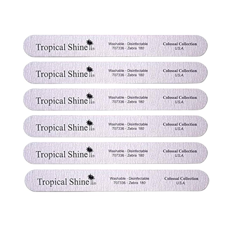 "Tropical Shine Jumbo Zebra 180 Colossal Collection - 6 pcs Nail Files for Professional Nail Care and Shaping - Medium (180) Grit Nail File Set for Natural Nails ( 707336)"