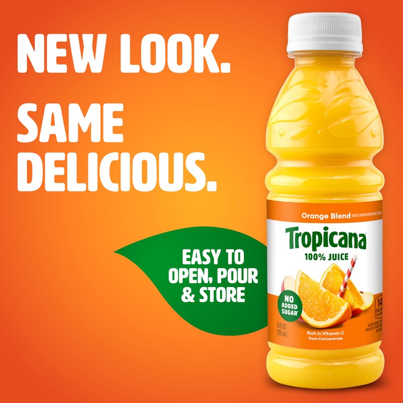Tropicana 100% Juice Orange Blend, Single Serve, 10 fl oz Bottles (Pack of 24) - Real Fruit Juice, Vitamin C Rich, No Added Sugars, No Artificial Flavors