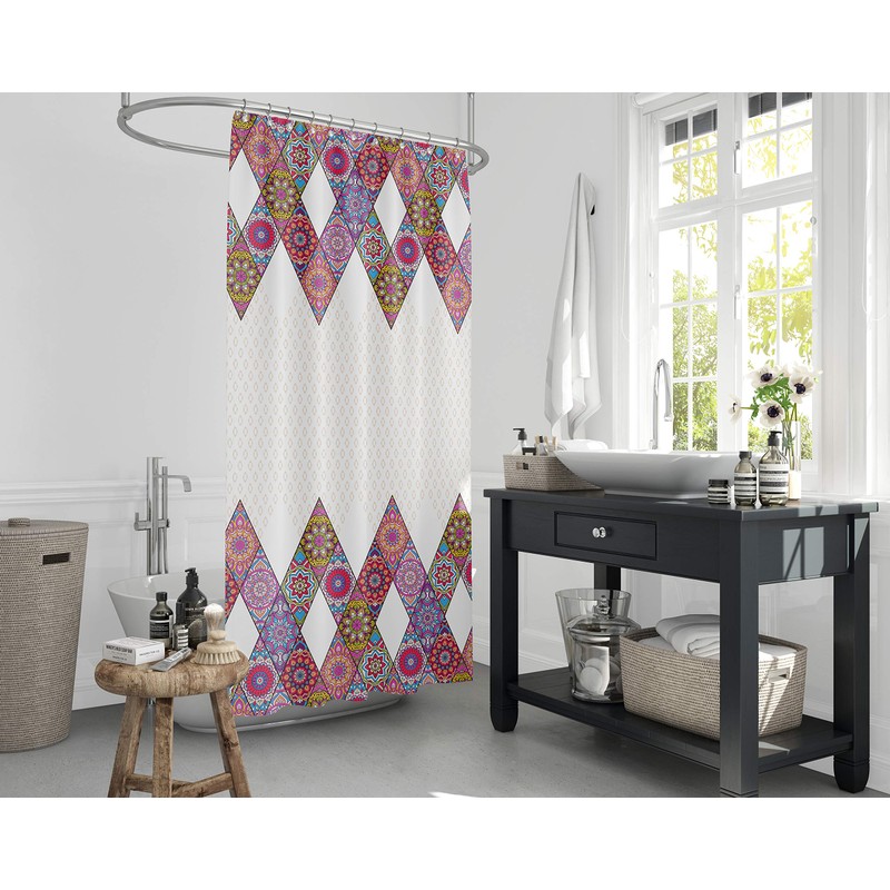 Tropik Home Quality Extra Long, Extra Wide Fabric Shower Curtain - Patchwork (240X200CM)