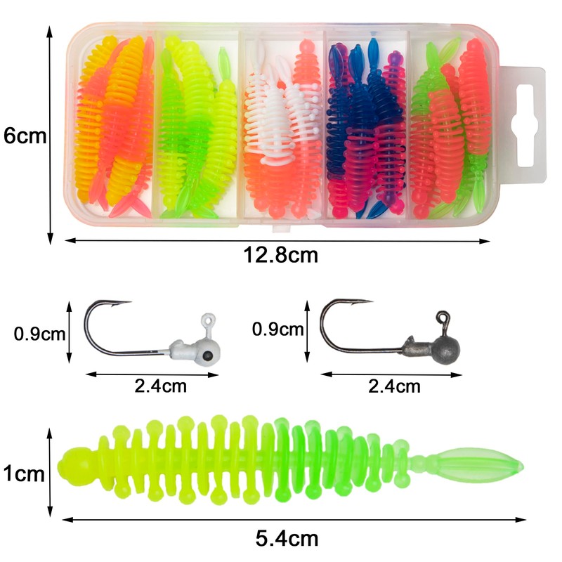 Trout Bait Rubber Fish Set, 30 Pieces Rubber Bait Trout with Jig Head UV Trout Bait Worm Artificial Bait Lures Fishing Accessories Trout